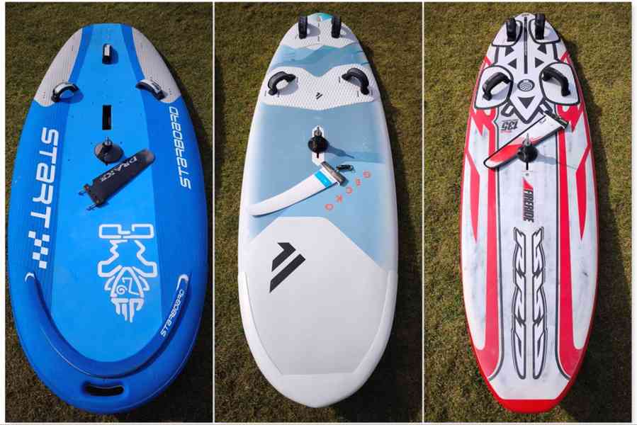 Prodám stabilní freeride windsurf plováky: Starboard 200l (EVA po celé palubě), Fanatic Gecko 148l, RRD LTD 135l, k tomu kompletní přístušenství, flosny, jezdce. Mám i model na ready to foil použití Patrik F-ride a F-race. Dále mohu přidat i Kompletní oplachtění Gaastra 7,8m2, Severne 6,7m2, RRD 5,7m2 a 5,0m2 (karbonové stěžně 20-80% rdm/sdm, nástavce, ráhna s vytahovacím lanem, případně redukcí a úvazky) jako bonus přidám trimovátko. Cena dle velikosti a typu sestavy, dohodneme se. Vše v krásném stavu! Sestavit a na vodu, díky