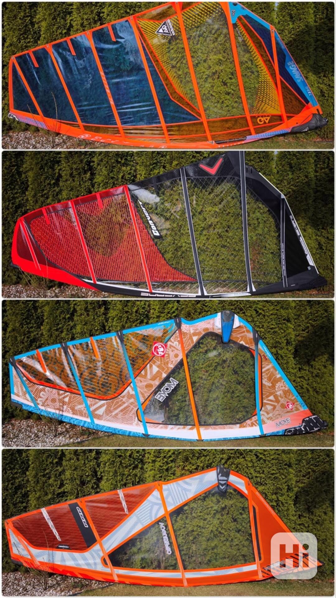 Prodám kompletní oplachtění na windsurf: Gaastra 7,8m2, Severne 6,7m2, RRD 5,7m2 a 5,0m2, mám i dětská pod 5,0m2 (karbonové stěžně 20-80% rdm/sdm, nástavce, ráhna s vytahovacím lanem, případně redukcí a úvazky) a dětská na učení či paddleboard (SUP) jako bonus přidám trimovátko. Cena dle velikosti a typu sestavy, dohodneme se. Vše v krásném stavu! Sestavit a na vodu, vše ukáži. Nejlépe volat, děkuji.